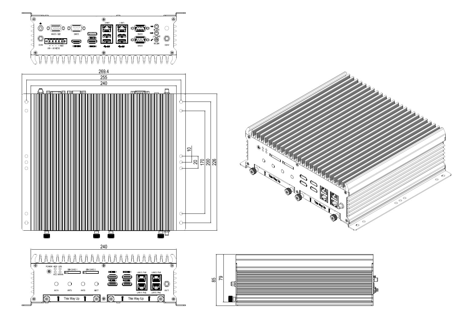 3x RS232/422/485, 4x digital In/Out and 4xUSB3.0 allow maximum connectivity. 7x HDMI connectors allow the connection of a variety of displays. The integrated graphics unit supports DirectX12, OpenGL4.5 and OpenCL2.0.